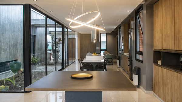 Desain rumah modern di Argentina sering menggabungkan ruang terbuka dalam ruangan. Misalnya, mereka menggunakan langit-langit tinggi, dinding kaca yang besar, atau atrium untuk menciptakan kesan luas dan terang dalam ruangan.