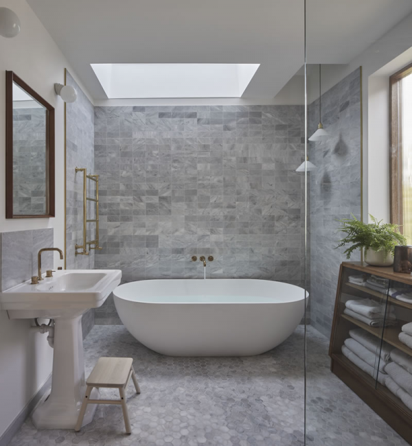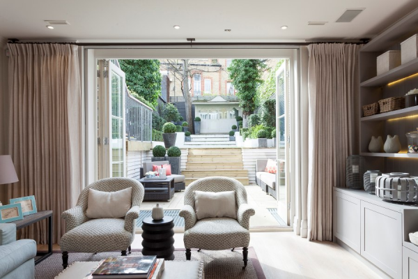 Rumah modern di London sering kali menggabungkan ruang dalam dan luar dengan cerdas. Desain teras atau balkon yang terbuka menjadi tempat yang ideal untuk bersantai sambil menikmati pemandangan kota, sementara taman di atap memberikan ruang hijau yang menyegarkan di tengah kesibukan perkotaan.
