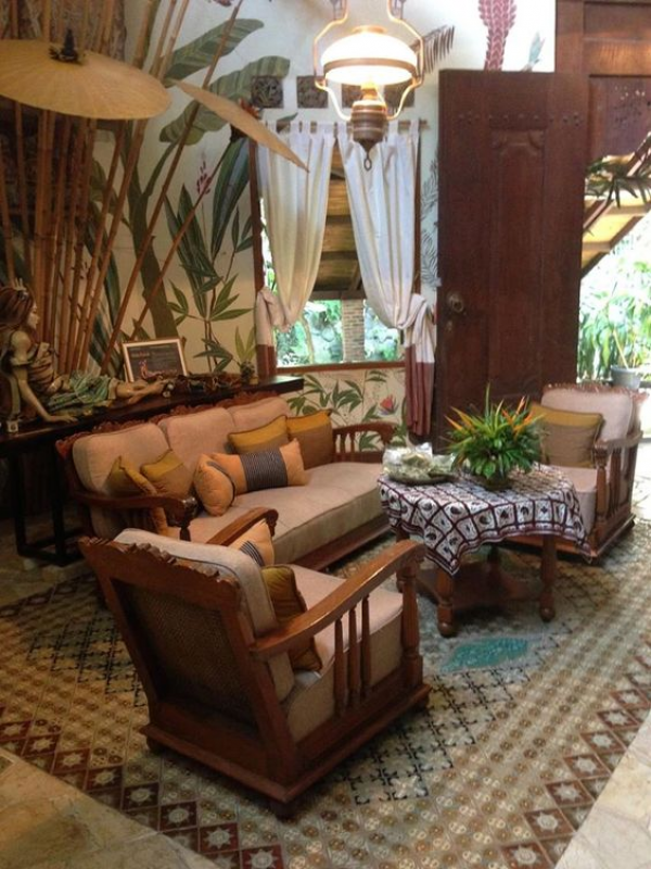 Tak lupa dengan pernak pernik etniknya yang tergantung di dinding ya bun.