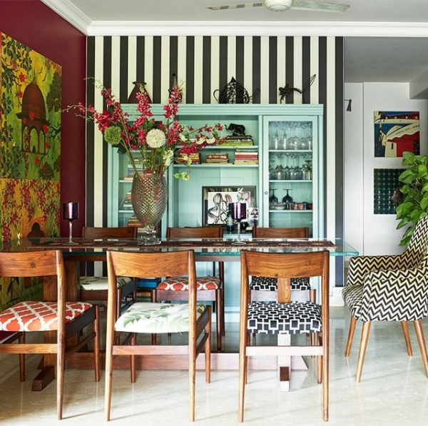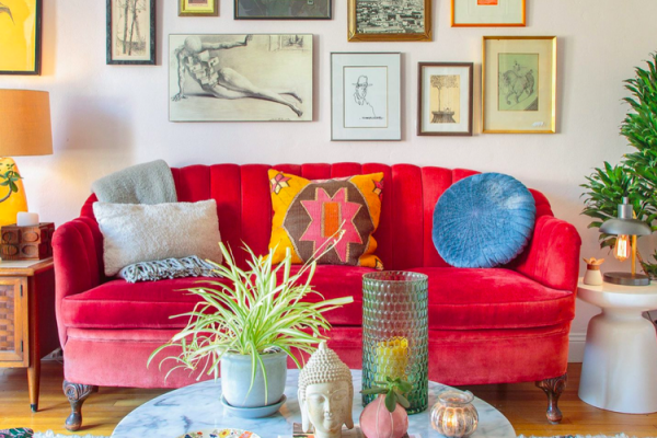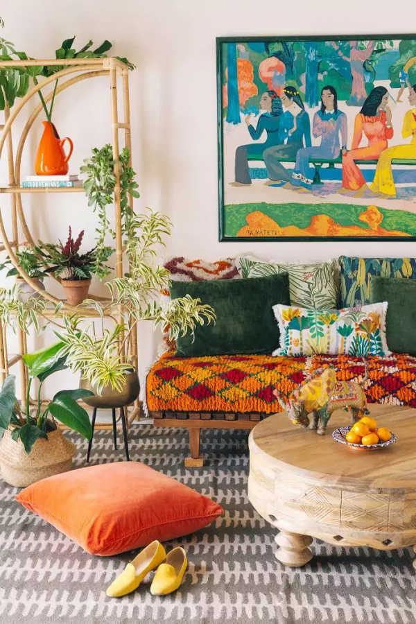 Perpaduan warna-warna yang berani yang menjadi ciri khas ruma bohemian.