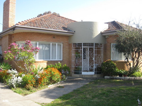 Atap datar membuat rumah arsitektur Art Deco tampak megah ya.