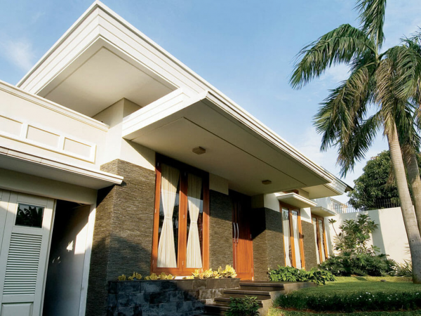 Kali ini rumah dengan arsitektur Art Deco dengan atap yang telah dimodifikasi agar sesuai dengan iklim di Indonesia.