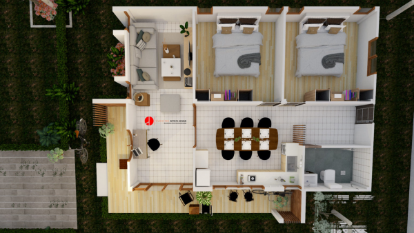 Desain interior dengan aneka furniture yang sesuai fungsinya.