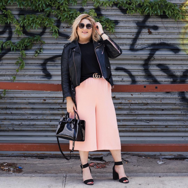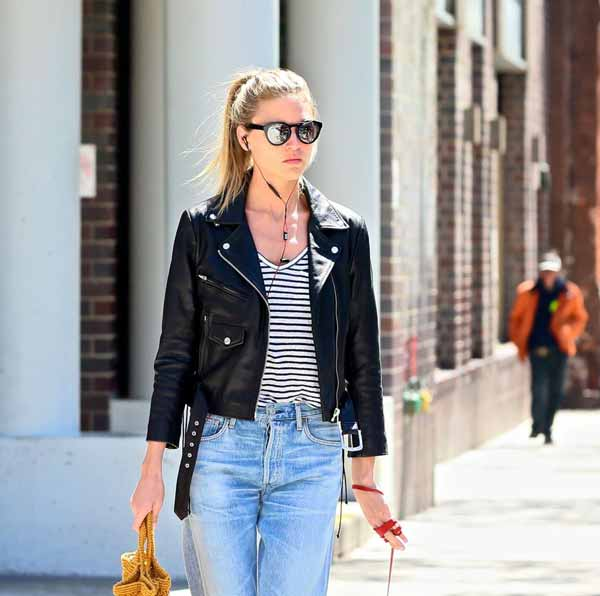 Jaket kulit yang dipadukan dengan dress cantik yang menggoda.