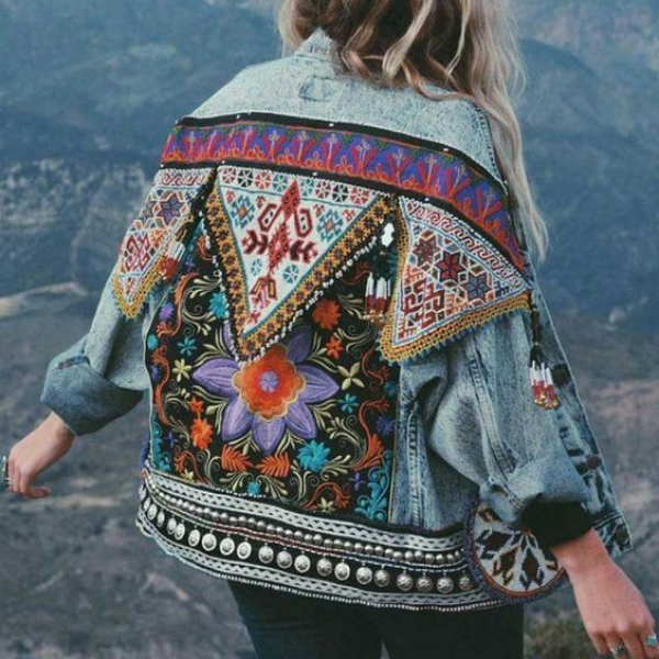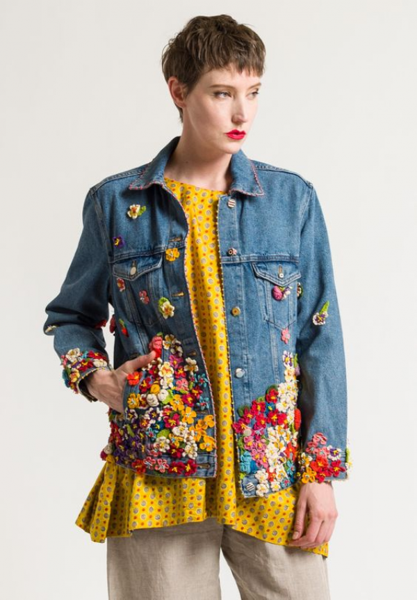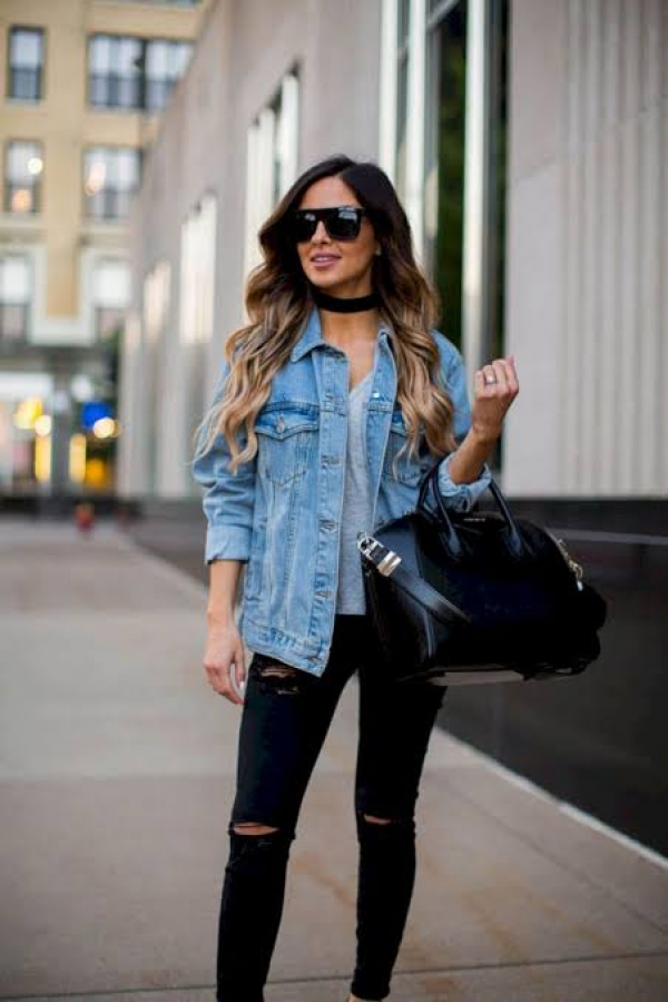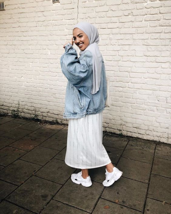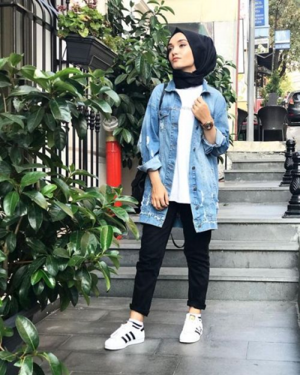 Jaket denim yang potongannya agak panjang begini juga terlihat cantik loh guys.