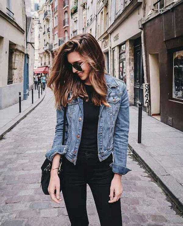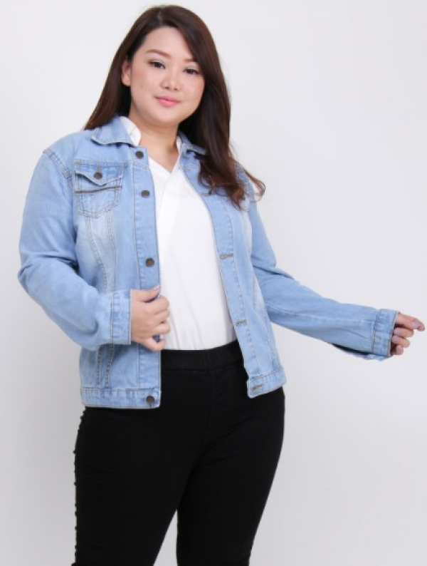 Jaket Demin yang pas dengan bentuk tubuh.