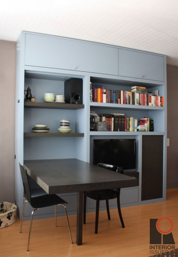 Furniture yang menyatukan lemari, meja kerja dan bisa juga sebagai partisi dinding atau sekat yang bisa di pindah-pindah.