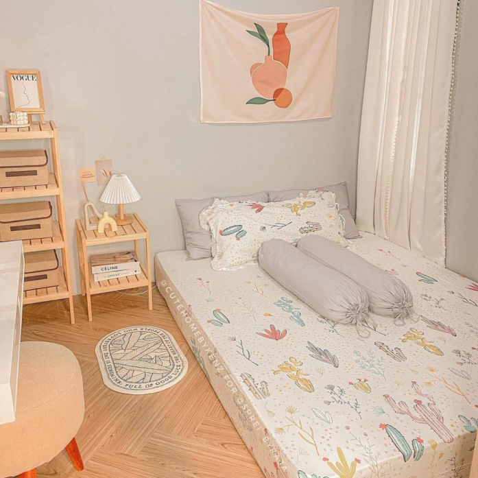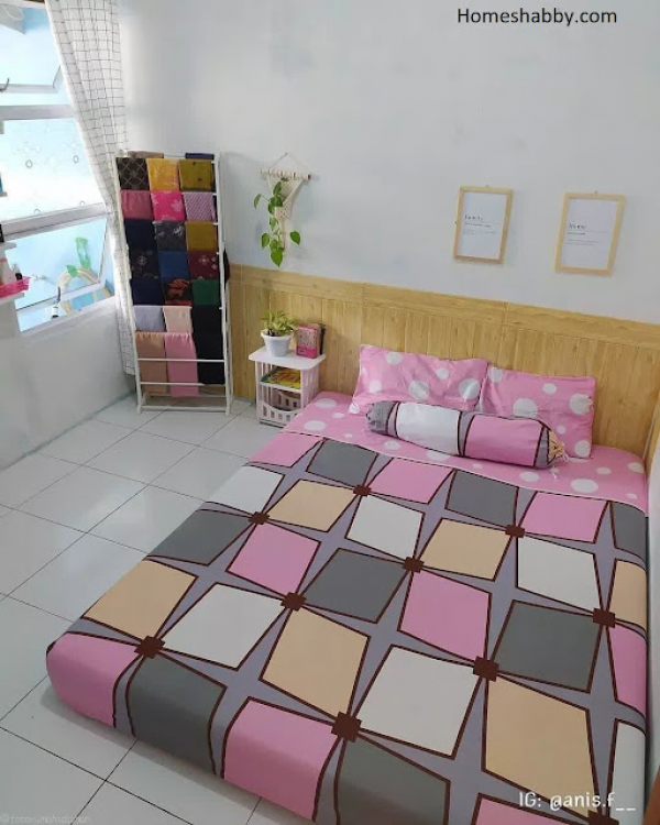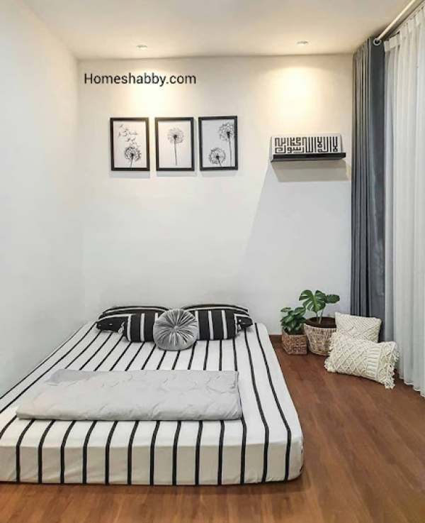 Dengan meminimalisir furniture serta penggunaan kasur lesehan yang tidak terlalu besar, akan membuat kamar tidur tampak rapi dan tidak sumpek.