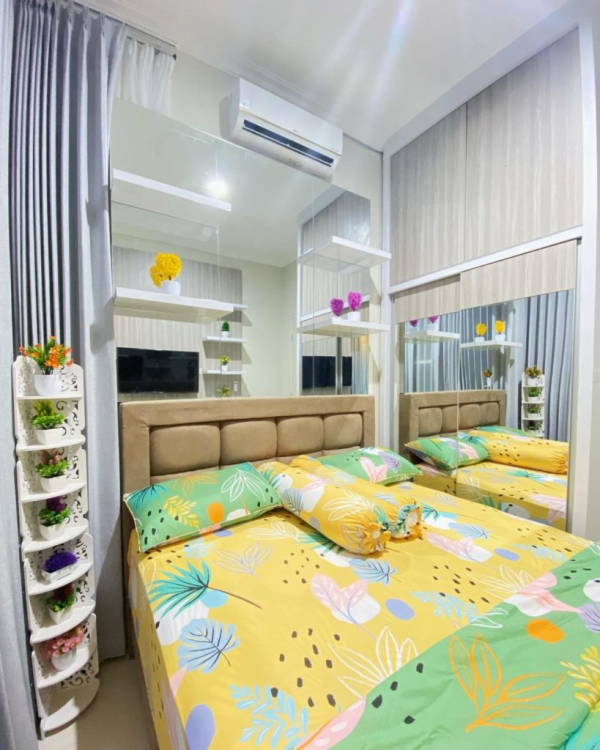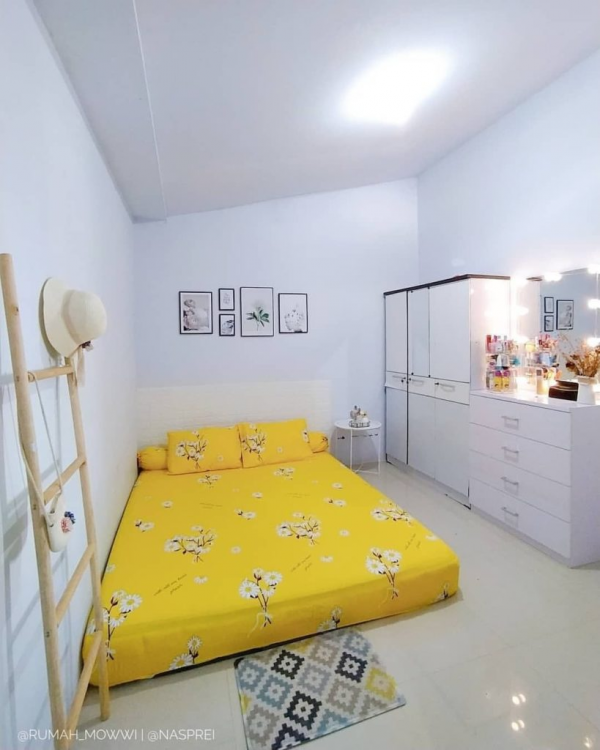 Membuat tampilan kamar tidur yang ukurannya cukup agar menjadi cantik dan menarik, bukanlah hal yang mudah. Karena ukurannya yang pas-pasan kita harus pandai dalam menyiasati interior, kasur serta furniture didalamnya, agar nantinya kamar tidak terlihat sumpek dan terkesan penuh sesak.