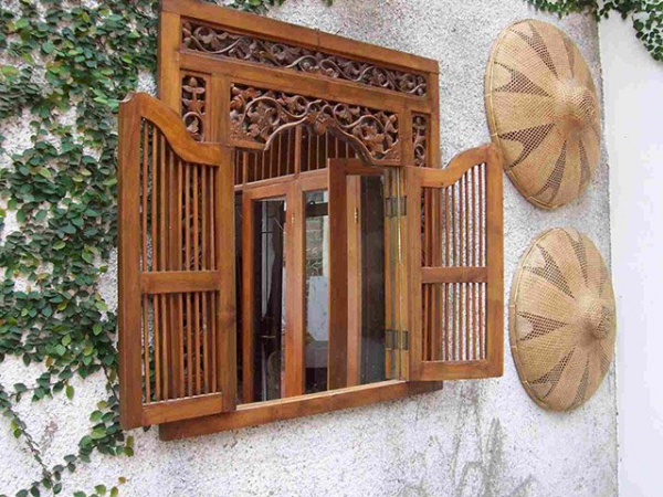 Desain jendela yang klasik dengan ukiran-ukiran yang cantik.