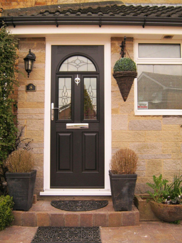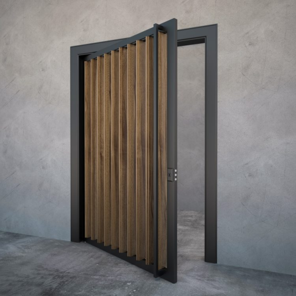 Pintu aluminium dengan nuansa hitam coklat yang eksotik.