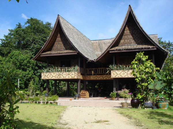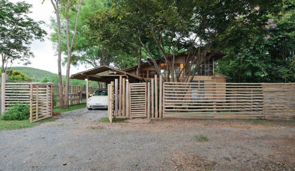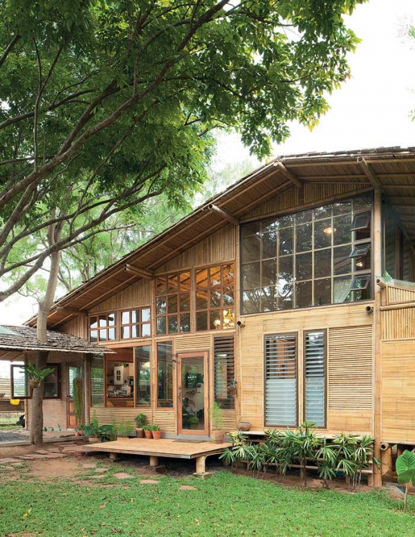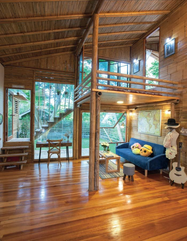 Rumah yang di desain tahan gempa ini, hampir seluruh materialnya dari bambu dan kayu.
