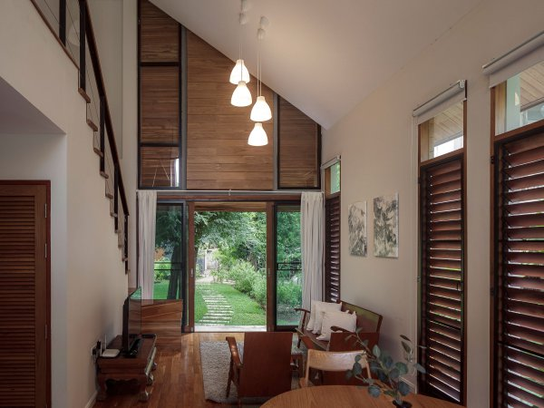 Rumah yang berada di Chiang Mai, Thailand ini memiliki konsep tropikal dengan teras yang minimalis, interios yang didominasi oleh kayu, serta ruangan-ruangan yang cukup luas.