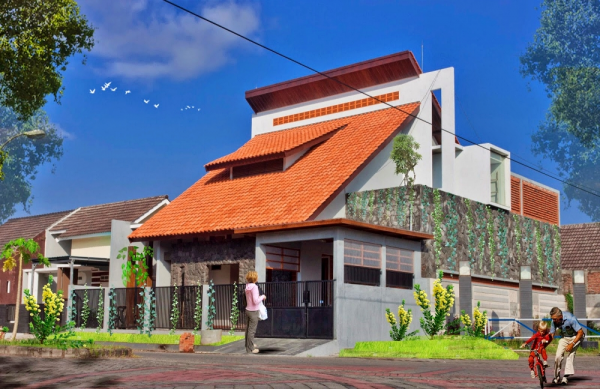 Rumah hook dengan desain dengan dua atap yang berbeda yang menarik ya.