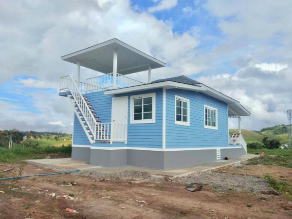 Rumah semi panggung leter L dengan roof top nya yang sederhana.