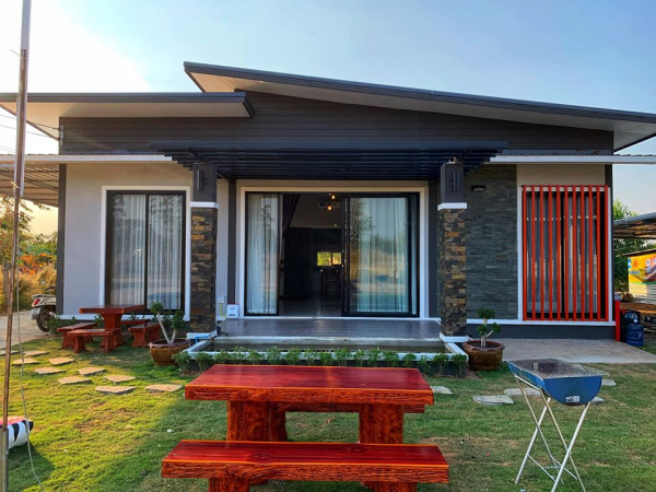 Diatas merupakan desain rumah modern satu lantai, dengan ukuran tanah yang cukup besar.