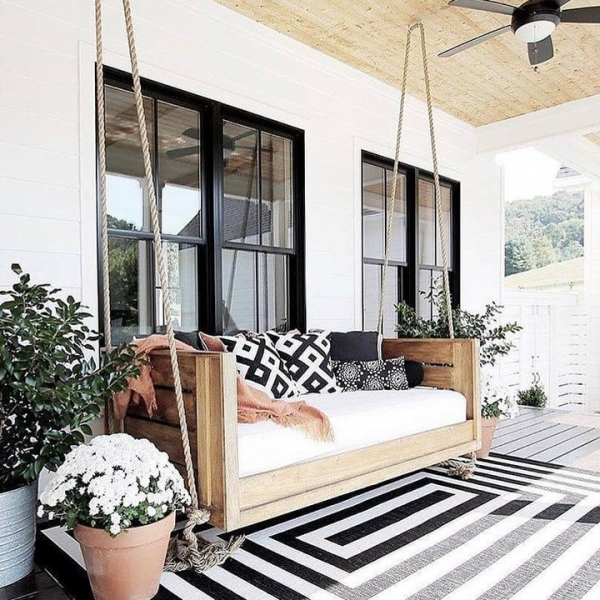 Dengan sofa gantung dan ayunan ini, akan membuat siapa saja betah berlama-lama di teras.