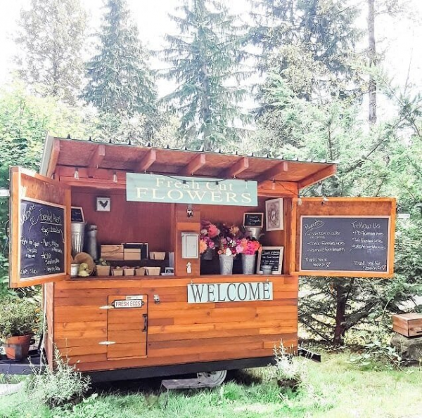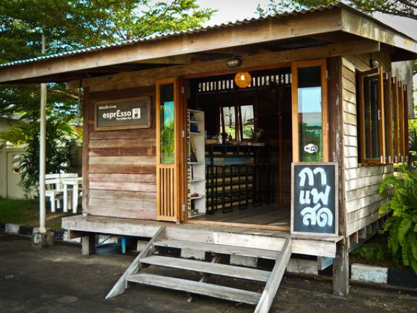 Warung model boot yang terbuat dari kayu.