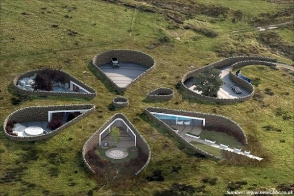 Untuk kita yang memiliki tanah berbukit serta uang yang lebih, mungkin rumah bawah tanah bisa menjadi pilihan yang unik.