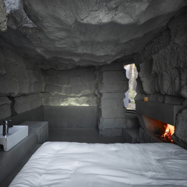 Dengan dinding yang bentuknya tidak beraturan dan terkesan seperti bekas tambang, justru menjadi nilai lebih dari rumah bawah tanah ini.