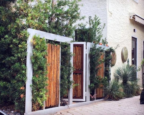 Pagar yang materialnya perpaduan bambu, kayu dan tanaman ini juga terlihat menarik.