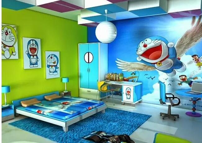 Ini bisa jadi rekomendasi untuk anda dalam memberi sentuhan warna pada dinding kamar. Dengan wallpaper full kartun pastinya anak anda akan selalu ceria. Diusahakan untuk mengambil tema kartun yang memiliki warna warna muda sehingga suasananya lebih ceria.