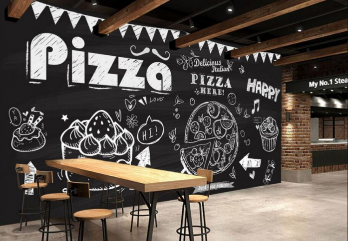 Konsep seperti ini sekarang banyak diterapkan di cafe dan rumah makan, karena dengan menambah gambar dinding yang menarik baik itu gambar menu makanan, gambar yang artistik atau gambar menarik lainnya yang pasti akan membuat cafe kalian miliki lebih terlihat keren. Selain itu cafe kalian miliki juga bisa menarik perhatian pelanggan yang suka berfoto selfie di tempat-tempat yang instagramble.