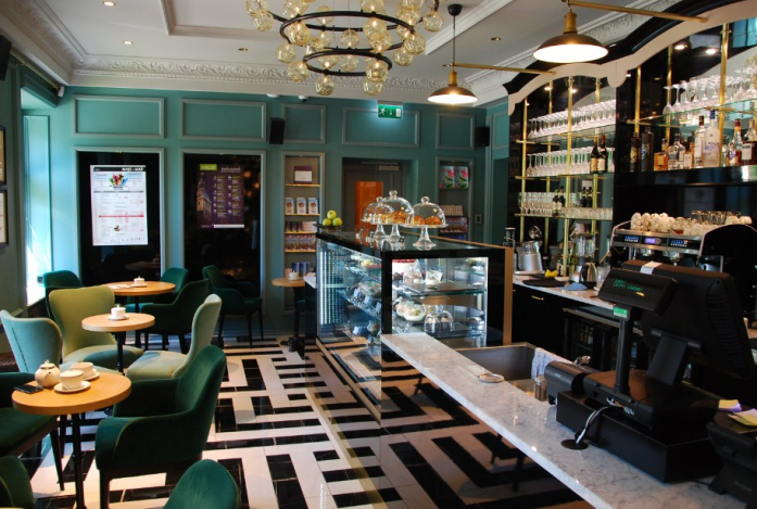 Dekorasi meja dan kursi khas kerajaan dan lampu yang klasik khas kerajaan akan membaut nuansa cafe lebih mewah