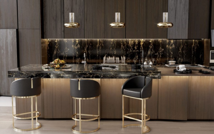 Dapur mewah dan elegan dengan nuansa Art Deco