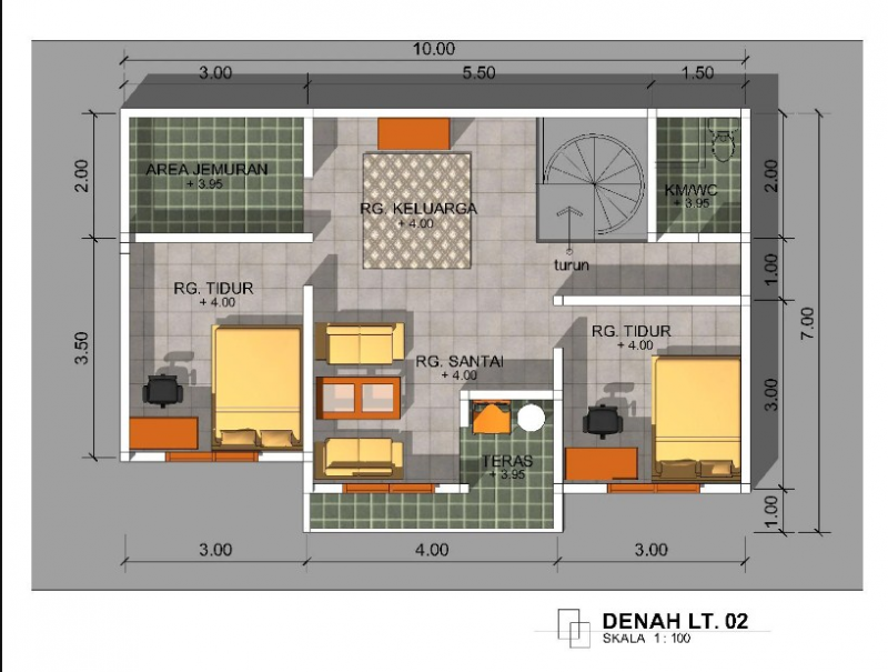 25. Desain Rumah 10 x 10 meter Lantai 2 ini untuk kamu yang ingin memangun lantai 2, tapi masih bingung denah untuk di lantai 2nya