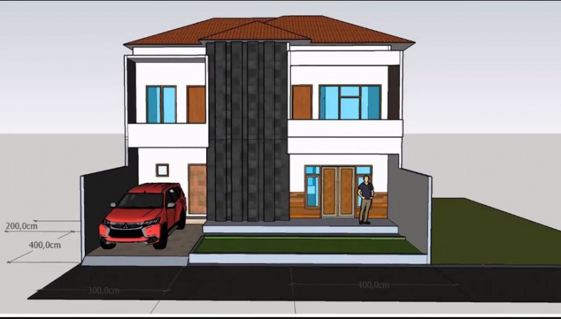 3. Desain rumah 10 x 10 m dengan menambahkan carport