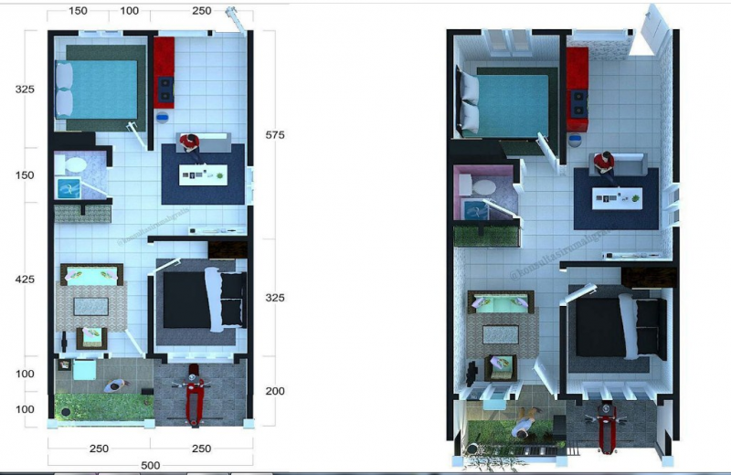 20. Selanjutnya ini masih dengan konsep rumah 10 meter kali 10 meter dan untuk contoh desain denah ini khusus untuk kamu yang hanya ingin membangun rumah dengan 2 kamar