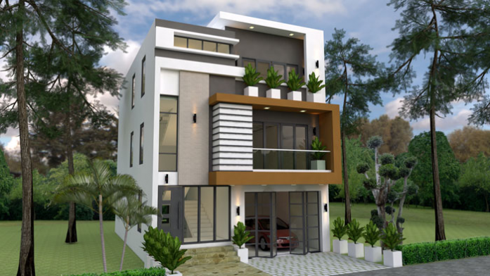 Salah satu desain yang bisa kamu terapkan untuk membangun rumah 3 lantai adalah gaya modern. Gaya ini cukup sederhana namun tetap stylish dan fungsional. Selain itu, desain gaya modern juga selalu mengikuti perkembangan zaman, sehingga rumah kamu terlihat lebih kekinian.