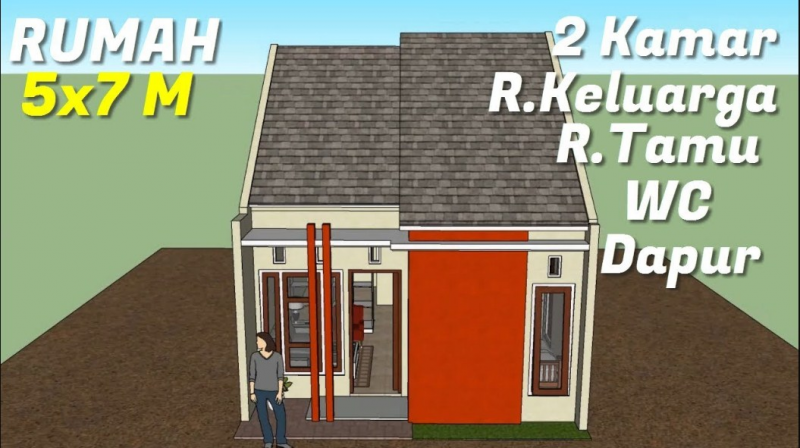 Untuk desain rumah ukuran 5 x 7 meter ini terdiri dari 2 kamar tidur, ruang tamu,ruang keluarga ,dapur dan kamar mandi. Untuk bagian depannya terdapat tetas kecil. Ketika masuk kedalam rumah maka akan menjumpai ruangan yang cukup luas.