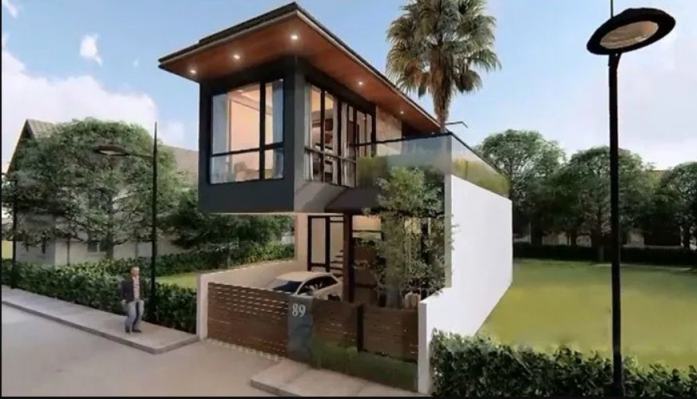 16. Desain Rumah 6 x 12 2 Lantai Minimalis juga bisa menjadi inspirasi tampak depan lainnya jika kamu ingin emmbangun rumah 2 lantai yang tampak modern minimalis