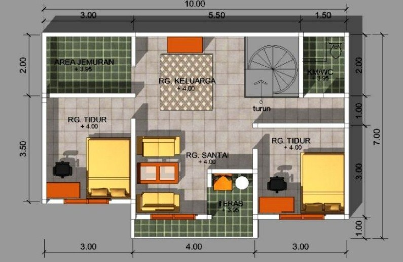 Untuk denah desain yang simple dan sederhana dengan luas tanah 8x6, kamu bisa menerapkan desain dengan teras rumah, kemudian ada ruang santai, ada ruang keluarga di bagian kanan ada kamar tidur, dibagian kiri ada kamar tidur, di belakang sebelah kanan ada kamar mandi dan bagian kiri belakang ada tempat untuk mencuci dan menjemur pakian untuk diterapkan di lantai 2.
