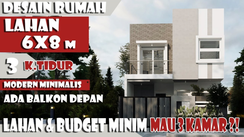 30. Desain Rumah 6x8 3 Kamar Tidur yang satu ini memiliki balkon depan rumah dan desainnya sangat modern dan tampak minimalis