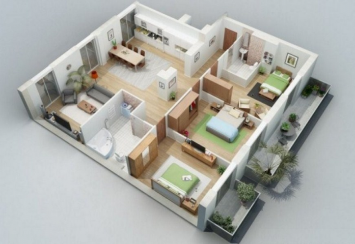 14. Denah Desain Rumah 9 x 12 dengan 3 kamar tdiur ini sangat simple dan minimalis