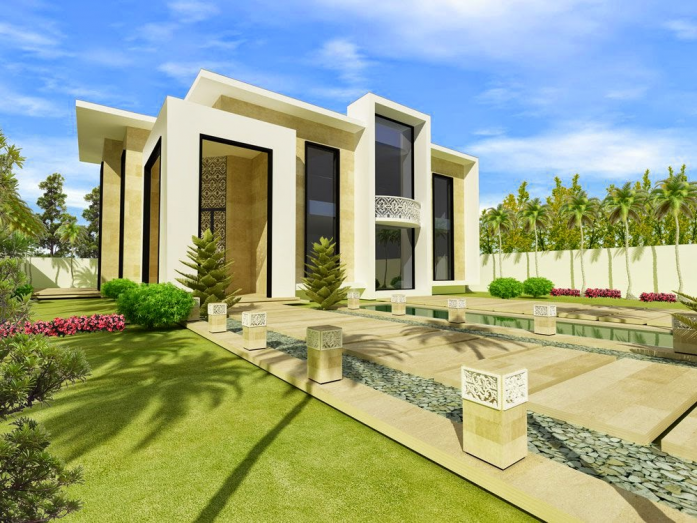 21. Dengan konsep atap datar dengan bangunan 2 lantai seperti ini membuat rumah tampak sangat sederhana tapi juga mewah