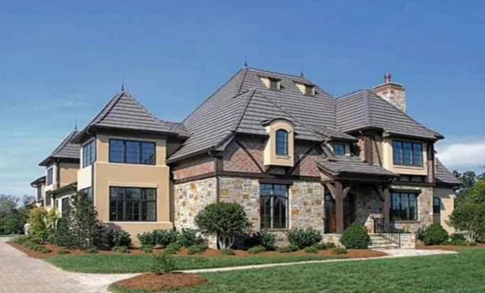 Rumah bergaya country ini memiliki lebih dari 1 lantai dengan desainnya yang terlihat tinggi dan memiliki atap miring. Sehingga rumah tersebut memiliki fasad yang seimbang dan terlihat cantik.