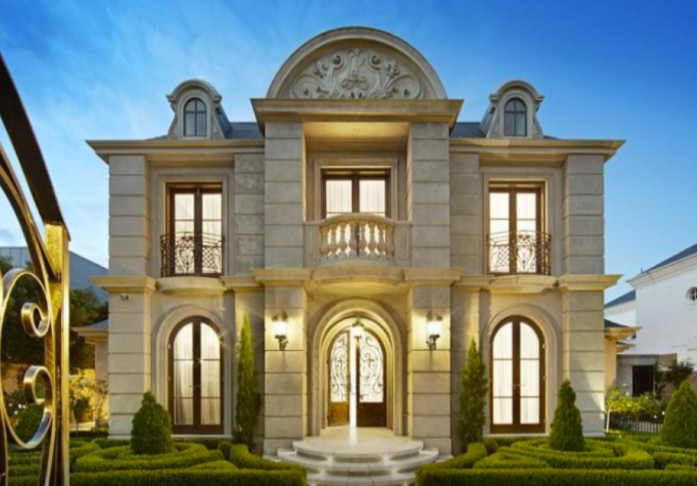 Desain rumah ini memiliki ciri khas yang klasik dan anggun, dengan detail yang dipahat dengan indah, pilar-pilar megah, dan ornamen-ornamen artistik yang menonjolkan keindahan arsitektur.