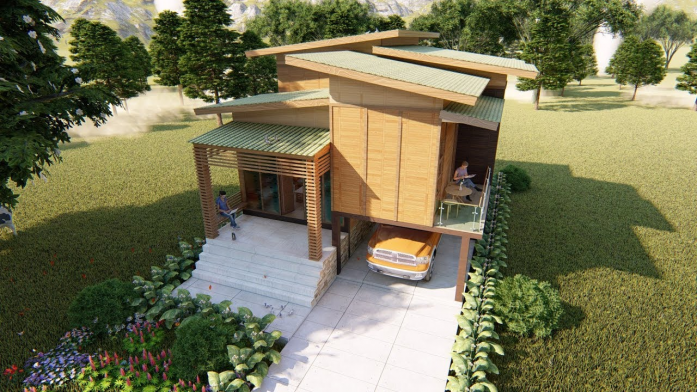 14. Kamu suka dengan rumah di desa yang terbuat dari kayu, tapi ingin memiliki rumah 2 lantai yang modern? Maka contoh konsep desain seperti ini yang paling cocok kamu terapkan