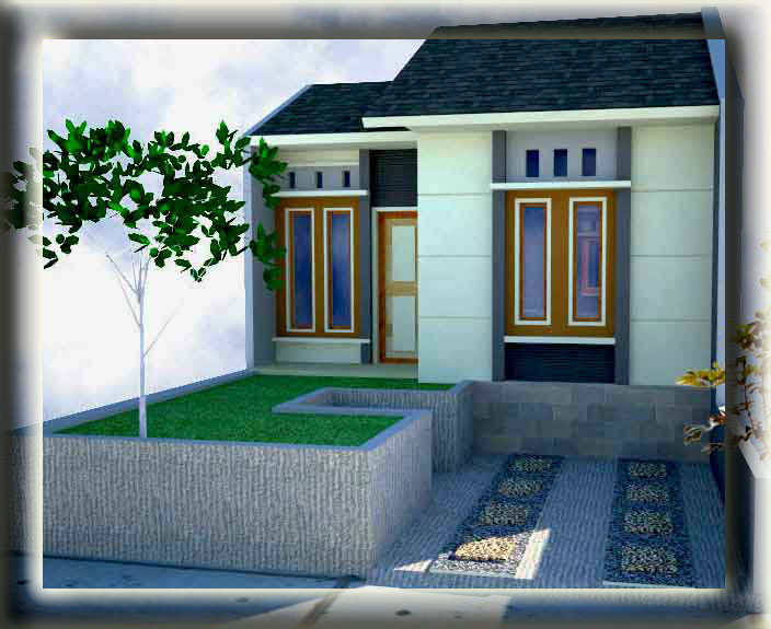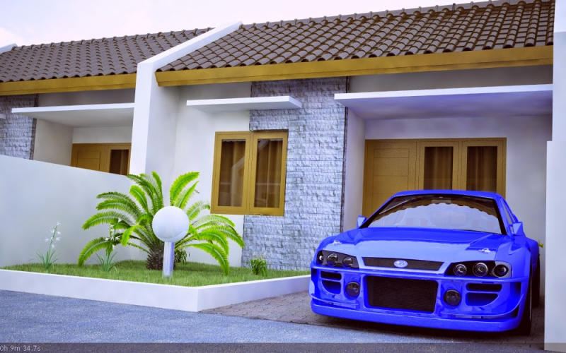 11. Contoh Desain Rumah Type 21 sangat sederhana dengan memiliki taman di depan rumah yang terbatas, tetapi lahan untuk parkir kendaran masih muat untuk satu mobil