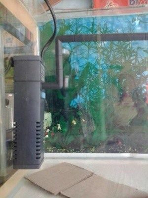 Filter diletakkan pada tangki aquarium ikan. Pompa udara yang dilengkap dengan cangkir pengisap dapat digunakan untuk menempelkannya ke dinding tangki aquarium. Sudut keluaran dapat diatur dengan tepat agar air keluar dekat permukaan air.