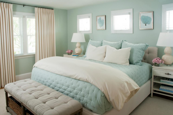 Dengan pemanfaatan warna biru muda, kamarmu jadi terlihat luas. Meski tanpa embel-embel dekoratif seperti sticker atau hiasan dinding, warna biru muda yang mengesankan ketenangan ini membuat kamarmu tetap sejuk seolah bebas berasa di bawah langit cerah nan luas.