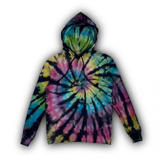 Hoodie dengan Efek Dye Spiral