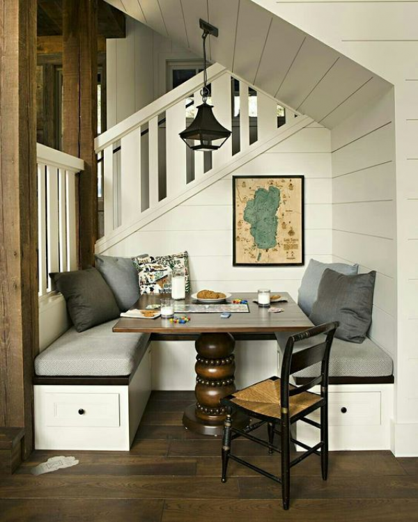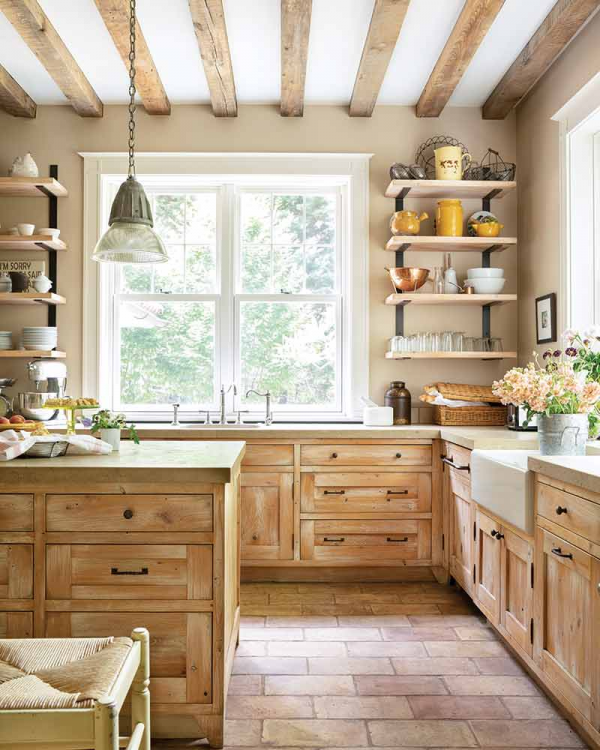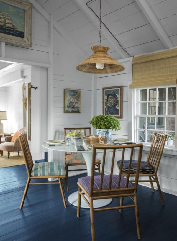 Material kayu akan memberikan suasana yang lebih alami dan pedesaan. Pilihlah furnitur dengan desain sederhana dan warna cerah agar tidak terkesan berat. Untuk menambah nuansa cottage, Anda bisa menggunakan furnitur dengan aksen UKM seperti kursi lipat atau meja pingpong.