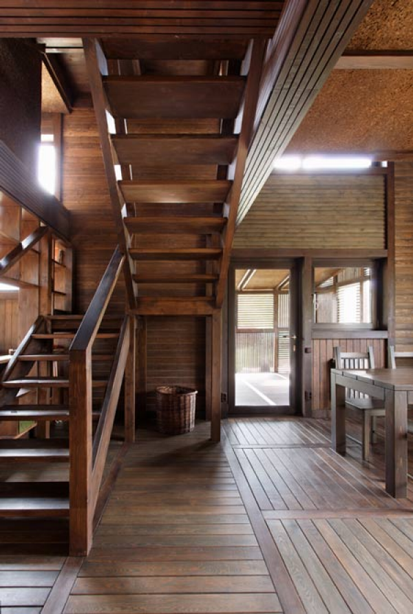 Sama dengan eksteriornya, bagian interiornya juga didominasi kayu.