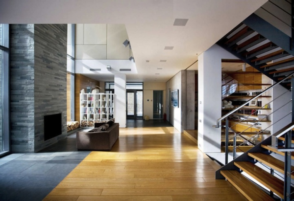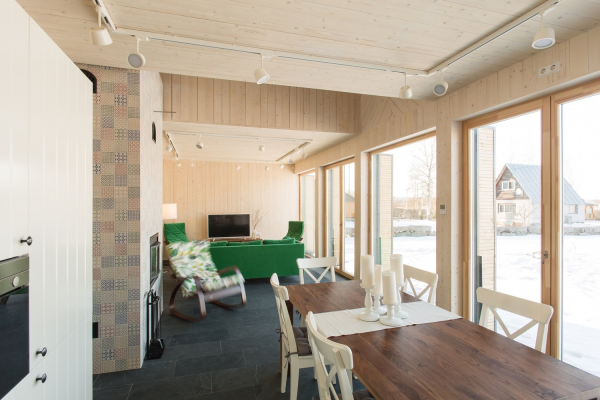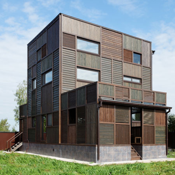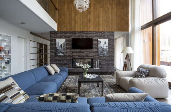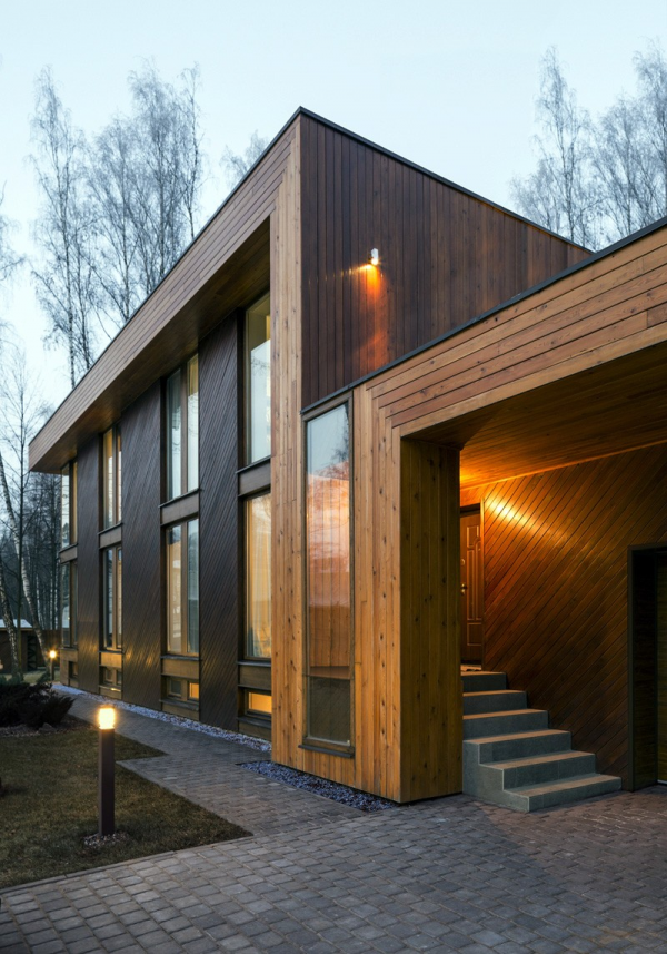 Material alami seperti kayu, batu, dan beton sering digunakan dalam desain rumah modern di Rusia. Penggunaan kayu sering kali memberikan sentuhan hangat dan alami pada interior rumah.