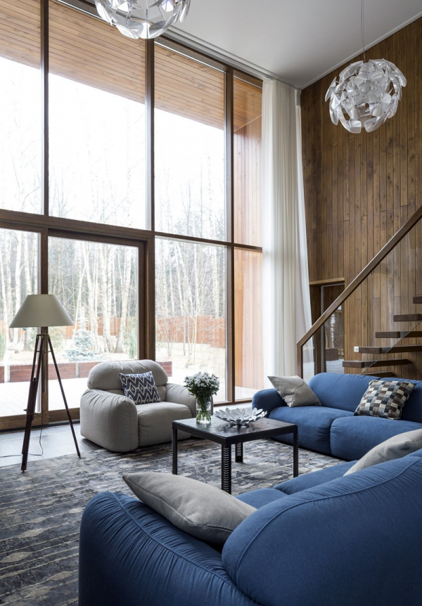 Rumah modern di Rusia sering memiliki jendela besar yang memaksimalkan penerangan alami dan menawarkan pemandangan luar yang indah. Desain ini juga memungkinkan penghuni rumah untuk terhubung dengan alam sekitar.